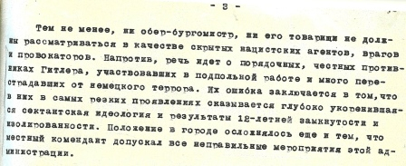 „In dieser Weise, infolge der Durchführung vollkommen unrichtiger Maßnahmen, entstand in Meißen ein günstigerer Boden für die Tätigkeit geheimer Naziagenten als in anderen Städten des Gebiets.